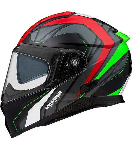 Casco Moto Integrale Vemar ZEPHIR JMC Z001 Bianco Rosso VerdeScheda Tecnica:Materiale: termo-polimero2 taglie della calottaVisiera interna solareCon omologazione ECESistema di bloccaggio della visieraVisiera max vision anti-antigraffio e antiappannamentoVisiera con predisposizione Pinlock ...