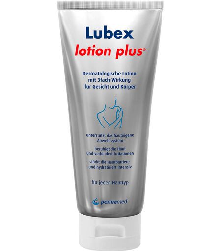 Lozione dermatologica per pelli normali, sensibili e irritate. Lubex lotion plus è stata sviluppata in collaborazione con dermatologi, tenendo conto delle più recenti scoperte scientifiche, ed è stata testata dermatologicamente e clinicamente con successo. Supporta la flora cutanea, previene le irritazioni, rafforza il mantello idrolipidico e ricostruisce lo scudo protettivo dell'epidermide. Applicazione: applicare Lubex lotion plus dopo la doccia o il bagno. Aiuta anche contro il freddo, la secchezza, il vento e dopo l'esposizione al sole. Adatto anche a neonati e bambini piccoli. Applicare uniformemente sulla pelle una o più volte al giorno, secondo le necessità, massaggiando delicatamente. Si assorbe rapidamente e non lucida. In caso di contatto con gli occhi, sciacquare con abbondante acqua tiepida. ...
