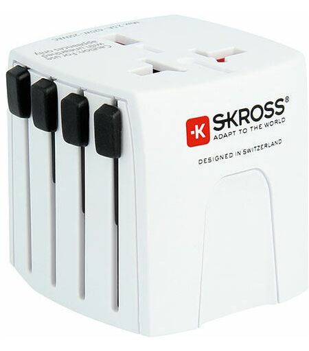 Adattatore multiplo da viaggio skross 1302180. 100v-250v. progettato in svizzera, ideale per apparecchi senza messa a terra, ingresso: europa, australia/cina, regno unito, stati uniti/giappone. uscita: europa, australia/cina, regno unito, stati uniti/giappone. tensione di ingresso: 100v-250v. carico massimo 2,5a. 100v-250w 250v-625w, fusibile sostituibile, non converte la tensione. ...
