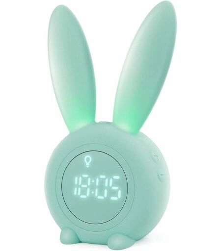 FORTUNEVILLE - Lampada per bambini Sveglia con coniglio carino Sveglia per bambini Lampada da comodino creativa Funzione di temporizzazione Snooze