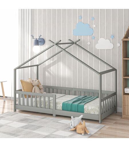 HAUSS SPOLE Letto per bambini 90 x 200 cm, Letto a soppalco con rete e doghe, protezione anticaduta, letto singolo, senza materasso, grigio