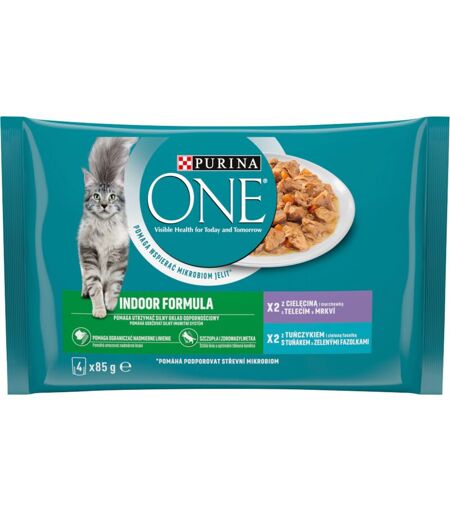 Purina ONE Indoor Formula - cibo per gatti, 340 g (4 x 85 g) - Digestione sana e pelo lucente