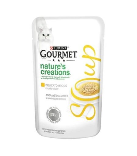 Alimento per gatti adulti: Perfetto per gatti adulti, GOURMET Nature's Creations Soup Pollo al Naturale è un'opzione deliziosa e nutriente. Pezzetti di pollo di alta qualità: Offre al tuo gatto una fonte di proteine prelibata. Brodo leggero: Servito in un brodo leggero per una sensazione di gusto equilibrata. Esperienza gourmet: Delizia il palato del tuo gatto con il meglio della cucina gourmet. Adatto come trattamento speciale: Ideale per arricchire la dieta quotidiana o come parte di una rotazione di sapori. ...