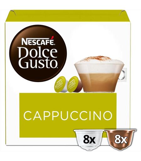 NESCAFÉ DOLCE GUSTO CAPPUCCINO è una sorprendente miscela di Arabica Colombiana e Brasiliana con chicchi di Robusta Asiatica che si sposa con il latte. Lasciati conquistare dalla sua densa schiuma e scopri le altre creazioni NESCAFÉ DOLCE GUSTO. ...