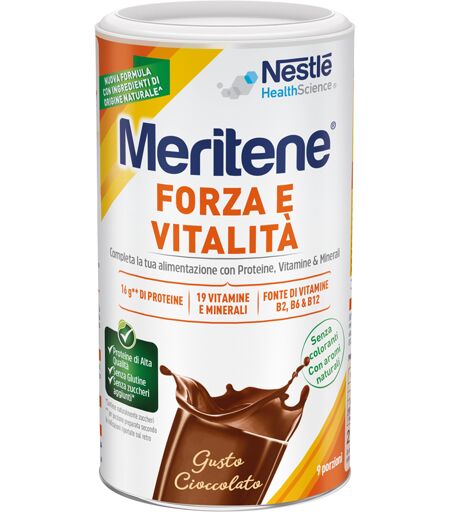 Meritene Meritene è un alimento arricchito che contiene i nutrienti ideali per recuperare le energie ed affrontare gli impegni quotidiani con più vigore grazie ad una combinazione specifica di 19 vitamine e minerali e proteine ad alto valore biologico. Le vitamine e i minerali contribuiscono alla ...