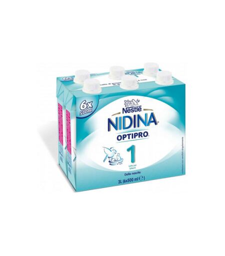 Nestle' Nidina 1 Optipro Latte per Lattanti Liquido, 6 brick da 500ml. Nestle' Nidina 1 Optipro latte per lattanti liquido in pratica confezione da 6 brick da 500 ml, e' idoneo sin dalla nascita, quando il bambino non e' allattato al seno.Con tappo richiudibile, la sua nuova formulazione contiene DHA come prescritto dalla legge per tutte le formule per lattanti in conformita' al Reg. UE 2016/127.Ingredienti di Nestle' Nidina 1 Optipro latte per lattanti liquido:HM-0 ;Unicamente lattosio;Senza olio di palma.AVVISO IMPORTANTE: Il latte materno e' l'alimento ideale per il lattante e l'allattamento al seno dovrebbe durare piu' a lungo possibile. Prima di scegliere un latte formulato e' necessario interpellare il pediatra.L'allattamento al seno e' l'alimento ideale per il lattante nei primi sei mesi di vita ed e' consigliabile proseguire l'allattamento al seno anche durante lo svezzamento. ...