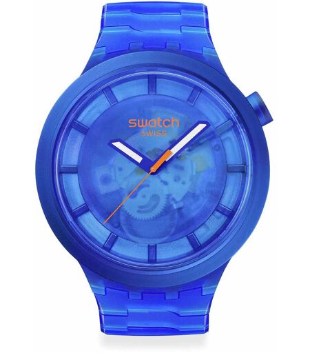 Orologio Solo Tempo Unisex Di Swatch Della Collezione Colors Of Joy. Cassa In Materiale Di Origine Biologica Di Colore Blu Trasparente Opacizzato E Di Forma Rotonda. Diametro Cassa: 47 Mm. Cinturino In Materiale Di Origine Biologica Di Colore Blu ...