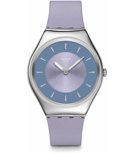 Orologio Solo Tempo Di Swatch Unisex Della Collezione Essentials . Cassa In Acciaio Inox Di Colore Grigio Lucido E Di Forma Rotonda, Di Diametro 38 Mm. Cinturino In Silicone Di Colore Grigio-Lino E Viola-Blu, Larghezza Ansa 16 Mm. Resistenza All'Acqua 3 ...