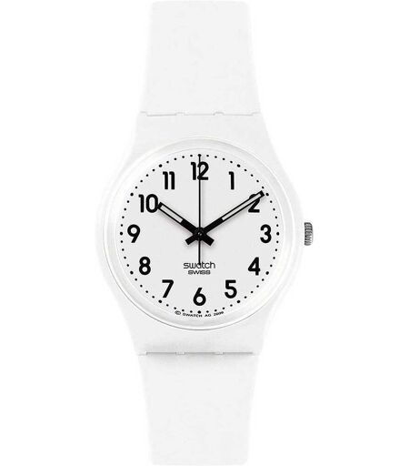 Orologio Solo Tempo Da Donna Di Swatch Modello Gent Standard Collezione Core Collection Ii Semestre 2019. Orologio Con Cassa In Plastica Di Colore Bianco E Di Forma Rotonda Del Diamentro Di 34 Mm. Cinturino In Silicone Di Colore Bianco Della Larghezza Di ...