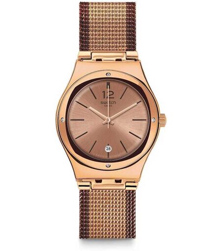 Orologio Solo Tempo Da Donna Di Swatch Modello I Medium Standard Collezione Core Collection Ii Semestre 2019. Orologio Con Cassa In Acciaio Di Colore Oro E Di Forma Rotonda Del Diamentro Di 33 Mm. Cinturino In Maglia Milanese Multicolore Della Larghezza ...