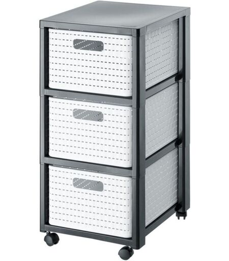 ROTHO Country Roll contenitore con 3 cassetti in look rattan de, plastica senza bpa (pp), bianco, 3 x A4/18l (37,5 x 32,5 x 32,5 x 71,2 cm) -