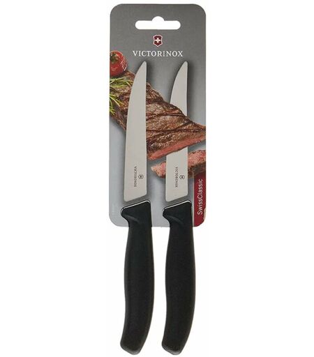 Victorinox Swiss Classic, set di 2 coltelli da bistecca gourmet con lama extra tagliente, nero -