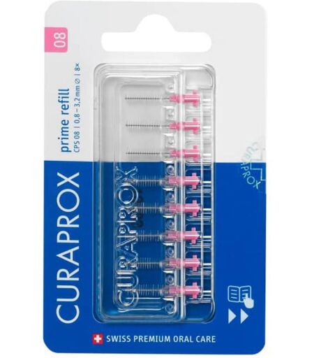 Curaden Ag Curaprox CPS 08 Scovolino Interdentale Prime Refill Pink, 8 Pezzi, Igiene Orale, Carie, Gengivite, Alitosi