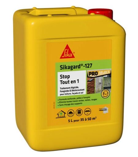 Presentazione : Questo SIKA - Sikagard-127 Stop Tout en 1 - 5L è un liquido incolore, inodore e pronto all'uso che non richiede risciacquo. È un trattamento 2 in 1 per curare e rimuovere i segni verdi, neri e rossi. La sua formula professionale rinforzata in principio attivo garantirà un trattamento efficace di tetti, facciate e pavimenti. Non potrete più resistere alle tracce su edifici, strutture esterne e attrezzature per il tempo libero! Sika è un'azienda chimica leader nello sviluppo e nella produzione di sistemi e prodotti per l'incollaggio, la sigillatura, l'insonorizzazione, il rinforzo e la protezione nell'industria edilizia e automobilistica. L'innovazione dei prodotti e l'eccellenza nella qualità e nel servizio sono le priorità dell'azienda da oltre 100 anni! Vantaggi: Può essere applicato orizzontalmente o verticalmente Può essere applicato su tutte le superfici: ardesia, scandole, pietra, mattoni, calcestruzzo, malta, fibrocemento, gesso, terracotta, poliestere, zinco, ...