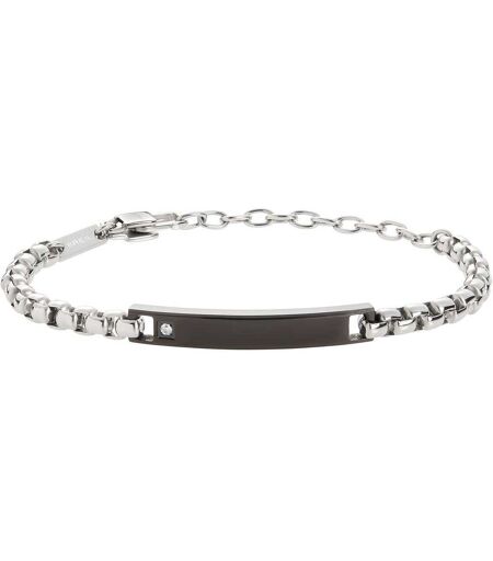 Bracciale Da Uomo Di Breil Della Collezione Tag & Cross. Gioiello In Acciaio Lucido Con Elemento Centrale In Acciaio Ip Black Lucido E Cubic Zirconia Bianco. Lunghezza Massima 22 Cm, Regolabile Fino A 17 Cm E Chiusura A Moschettone. La Referenza È ...