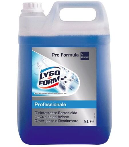 Lysoform Professionale e' un disinfettante ad azione detergente e deodorante per uso professionale, consigliato per la disinfezione e la pulizia di tutte le superfici e pavimenti lavabili in ospedali, scuole, uffici, guardaroba, bagni, locali pubblici, palestre e comunita' in genere. Elimina qualsiasi tipo di sporco dalle superfici trattate, deterge e disinfetta contemporaneamente. Aggressivo sulle macchie ostinate, pulisce e disinfetta senza macchiare ed intaccare i metalli. Lascia un gradevole profumo di pulito. ...