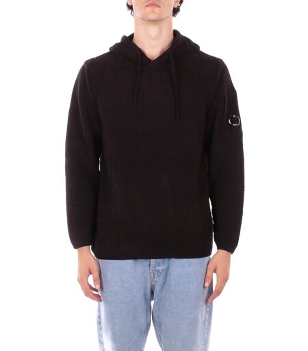 Felpa Uomo CP COMPANY Black Knitwear hooded in chenille co L