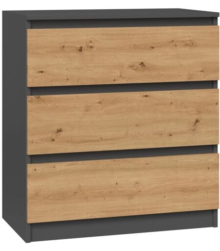 Il comò a tre cassetti Aster porterà un tocco di modernità e armonia nella tua stanza. Con il suo materiale, le linee pulite e i dettagli, si abbinerà perfettamente ai tuoi interni. La sua struttura in truciolare nobilitato è caratterizzata da una grande durabilità e da una finitura di tendenza PUNTI FORTI: 3 cassette Frontali moderni senza maniglia Molto utile per piccoli spazi Grande capacità di archiviazione Finitura: corpo del mobile in grigio scuro opaco, frontali effetto legno [CARATTERISTICHE TECNICHE: Dimensioni: 70x40x77 (LxPxA) Dimensioni della cassetta: 69x33x19 cm Struttura in pannelli di particelle di legno nobilitato Bordo in PVC Un autoassemblaggio Foto degli articoli quanto più fedeli possibile, ma rimanendo non contrattuali, le sfumature di colore e la resa dei materiali presentati sullo schermo potrebbero essere diverse dalla realtà. ...