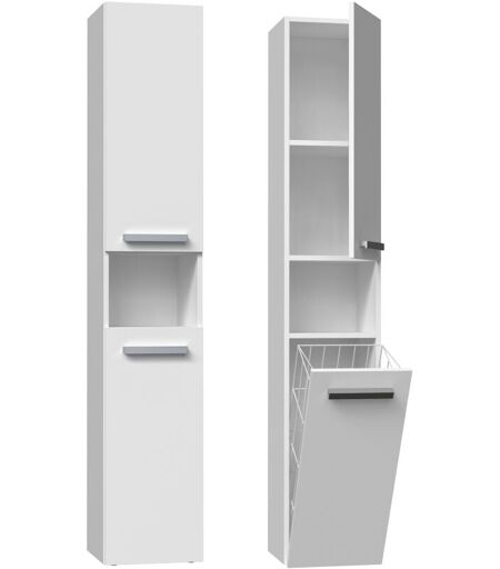 HUCOCO Horti - Mobile bagno con portabiancheria - 31x30x174 cm - Colonna portaoggetti bagno