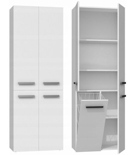 L'aspetto universale di questo mobile da bagno soddisferà le aspettative di tutti coloro che apprezzano la combinazione di semplicità ed eleganza. Le maniglie minimaliste consentono un facile accesso al contenuto dell'armadio. L'accurata realizzazione di questo pratico mobile a forma di colonna ti aiuterà a gestire il disordine senza occupare troppo spazio, PUNTI DI FORZA: Maniglie minimaliste, 5x ripiani chiusi, Finitura ordinata, Con cestello, Aspetto universale, Finitura: bianco opaco, CARATTERISTICHE TECNICHE : Dimensioni: 174x60x30 cm, Scocca in truciolare laminato spessore 16 mm, Bordi con finitura PVC, Maniglie in plastica argento, Frontali in MDF 17 mm, Da montare, Immagini degli articoli il più fedeli possibile, ma rimanendo non vincolanti ai fini contrattuali, le sfumature di colore e la resa dei materiali presentati sullo schermo possono essere differenti dalla realtà ...