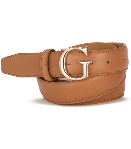 cintura da donna con chiusura a incastro con fibbia g logo. cintura realizzata in vera pelle. chiusura con fibbia e linguetta con marchio. cintura regolabile. colore: cognac. ...