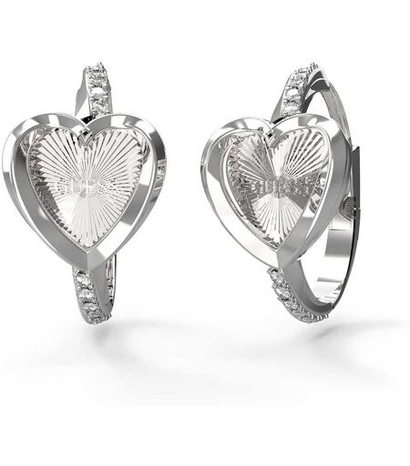 Orecchini Da Donna Di Guess, Della Collezione Mon Amour. Mini Cerchi A Cuore 15 Mm Di Materiale Acciaio Inox In Colorazione Argento. Misura: T/U. La Referenza È Jube04613jwrht/U, Materiale Gioiello: Acciaio, Argento 925, Bigiotteria, Oro, Pelle; Pietra: ...
