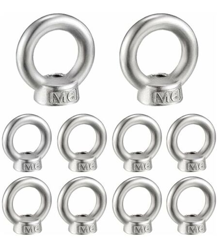 SHINING HOUSE Dado ad anello M6 10 pezzi in acciaio inossidabile 304 con filettatura, dado ad occhiello per accessori di sollevamento,