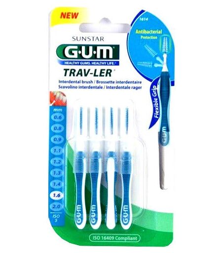 Gum Trav-Ler 1,6 Scovolino Pro Il nuovo GUM Trav-Ler è stato disegnato per garantire massimo comfort ed efficacia: Rimuove fino al 25% in più di placca rispetto ad una setola tradizionale in nylon grazie all’innovativo design triangolare del filamento Il nuovo manico ergonomico garantisce massimo comfort e controllo grazie al manico più lungo, flessibile e antiscivolo. Il collo pieghevole permette un facile accesso ai denti posteriori. Per ridurre il rischio di trauma ed evitare danni allo smalto dei denti, il filo è ricoperto e la punta del manico è arrotondata per assicurare la protezione delle gengive. Le setole sono trattate con Clorexidina, un agente antibatterico, per mantenere lo scovolino pulito fra un uso e l’altro e per prevenire la contaminazione. Il cappuccio salva-igiene ricopre la duplice funzione di protezione dello scovolino e di estensione del manico per un facile accesso ai denti posteriori. Formato 4+2 Pezzi. ...