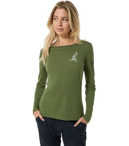 Super.natural Maglietta A Maniche Lunghe Charming Deer Chive / Vintage Khaki Melange / White Stone XL