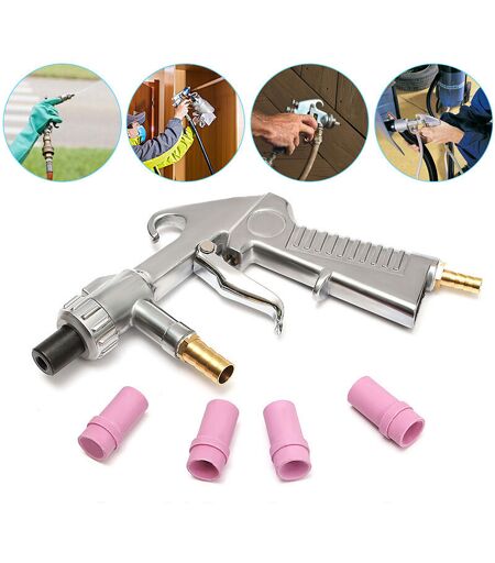 AHLSEN Pistola pneumatica per sabbiatura con 4 ugelli in ceramica, pistola per sabbiatura con ugello in metallo nero e punta di collegamento aria