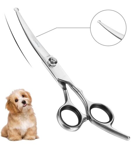 AHLSEN Forbici curve per toelettatura cani con punte arrotondate, forbici curve per cani e gatti