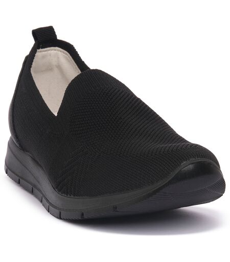 mocassini enval soft con tomaia in tessuto elasticizzato flyknit e comodo plantare in memory foam zeppa alta 3 cm. questo tipo di materiale attenua gli impatti del camminare rendendo il passo piu leggero e confortevole. slip on con il plantare estr ...