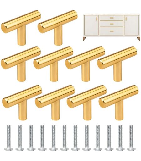 JN.SONGS 10 Pomelli per Cassetti Forma di t, Maniglie Per Mobili Vintage, Maniglia per Armadi, Guardaroba, Bagno e Cucina 50x32mm Oro
