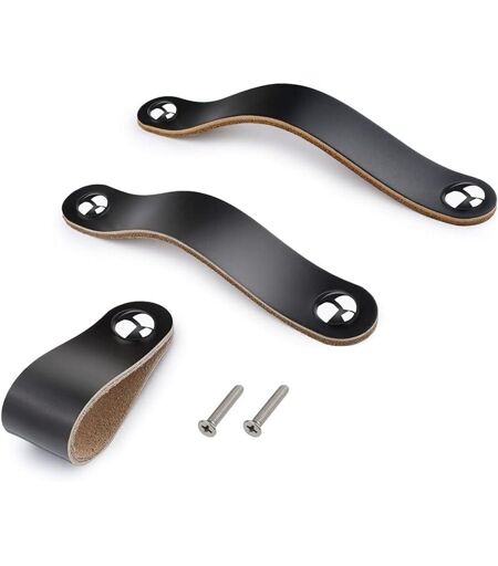 JN.SONGS 6 Pezzi Pomelli per Mobili in Pelle, Distanza fori 196mm Maniglie in Pelle per Armadio, Maniglia per Cassetti con Viti per Porte Cucina Cassetto