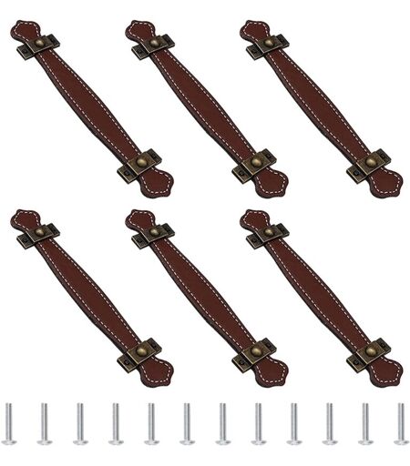 JN.SONGS 6 Pezzi Pomelli per Mobili In Pelle, Retrò Maniglie della Porta Distanza fori 128 mm, Marrone Maniglia con Viti per Armadi Cucina Camera da Letto