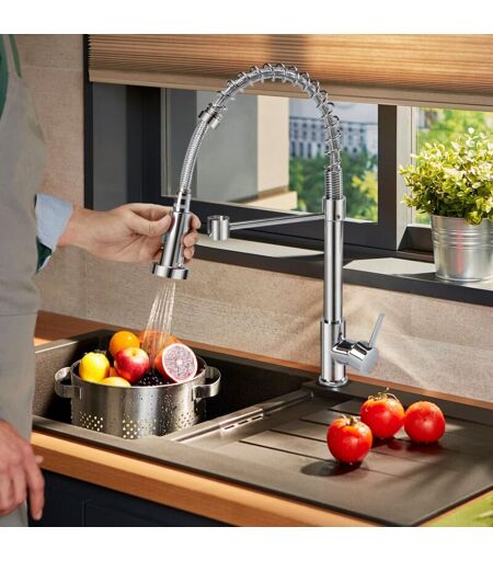 JN.SONGS Rubinetto da Cucina con Molla a Spirale, Rubinetto Lavello con Doccetta Estraibile, Miscelatore Cucina Girevole a 360° Monocomando - Spazzolato
