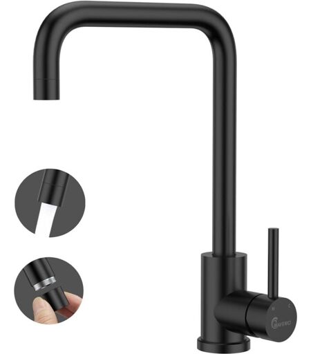 Peso: 1,5 kg Quantità: 1 pezzo -- Il rubinetto da cucina nero è realizzato in acciaio inox di alta qualità, resistente alla corrosione e alla ruggine. -- La superficie esterna è galvanizzata in nero opaco con una texture pregiata. Si abbina a qualsiasi stile di arredamento. -- Il nucleo della valvola in ceramica conferisce al rubinetto eccellenti prestazioni di tenuta, assenza di perdite e lunga durata. -- Il rubinetto del lavello è girevole a 360°, consentendo di ruotarlo nell'esatta posizione desiderata durante l'uso. -- La bocca di erogazione è aerata per evitare schizzi e rumori. Inoltre, l'aeratore può essere rimosso per la pulizia. ...
