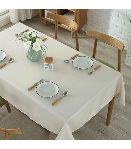 JN.SONGS - Tovaglia in Lino Lavabili Tovaglie con Bordo in Pizzo per Tavolo Rettangolare Salotto Cucina Beige - 130x180cm