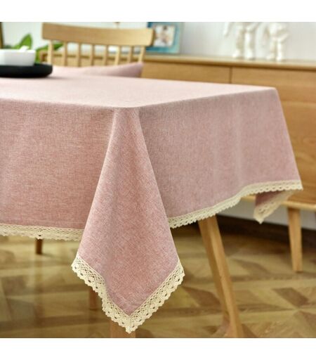 JN.SONGS - Tovaglia in Lino Lavabili Tovaglie con Bordo in Pizzo per Tavolo Rettangolare Salotto Cucina Rosa - 90x90cm