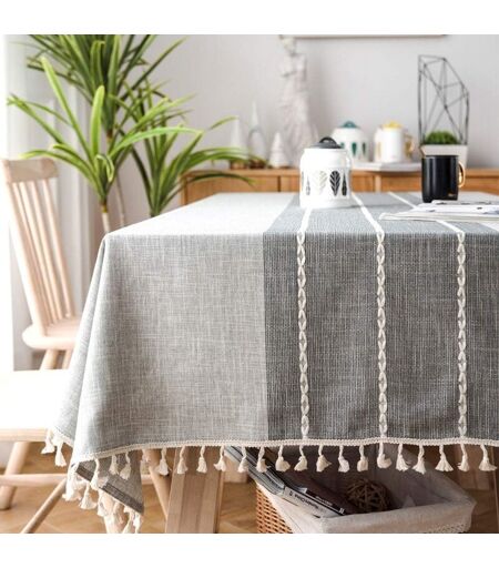 JN.SONGS - Tovaglia Antimacchia Rettangolare in Cotone e Lino Copritavolo per Tavolo con Nappa da Pranzo, Cucina, Festa Compleann Grigio - 140x200cm