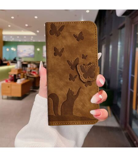 SHINING HOUSE Custodia protettiva adatta per iPhone15PROMAX, con slot per schede, motivo gatto marrone e farfalla