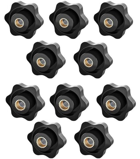 Contenuto della confezione: riceverai 5 dadi a stella M6 e 5 dadi a stella M8. Diametro della testa: 32 mm; Diametro della filettatura interna: 6 mm, 8 mm. Facile da usare, può soddisfare le tue esigenze quotidiane. Materiale di alta qualità: il dado a stella è realizzato in plastica e rame di qualità, pregevole fattura, senza angoli o sbavature, aspetto gradevole, robusto e resistente e di lunga durata. Queste manopole di serraggio con filettatura femmina in ottone si adattano perfettamente alla filettatura del bullone compatibile. Tengono saldamente e non scivolano. Design unico: con l'impugnatura a fiore di prugna, il design può offrire una presa più comoda; la filettatura interna è chiara e completa e la forza viene applicata in modo uniforme. Design ergonomico ed effetto antiscivolo senza graffiare le mani. Facile da usare: la manopola di serraggio del dado a stella è filettata per un facile avvitamento nel meccanismo. Afferrare saldamente le filettature dei bulloni in modo che ...