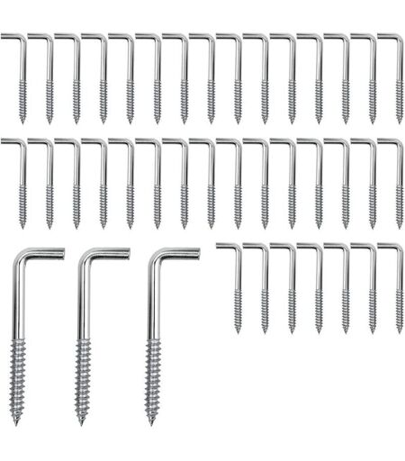 SHINING HOUSE 70 pezzi M4 ganci a vite viti angolari ganci a L ganci a vite in acciaio al carbonio per appendere piante utensili da cucina campanelli eolici, 40