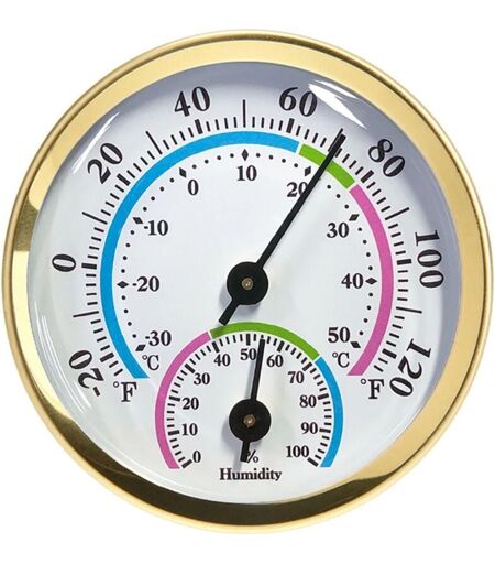 Questo igrometro è compatto e può essere posizionato all'interno per misurare la temperatura e l'umidità interna, soprattutto per le famiglie con bambini piccoli.< br/> Caratteristiche: Costruito con materiali resistenti alle intemperie e infrangibili per una maggiore durata durante l'uso. Misura con precisione temperature da -20°H a 120°H (da -30°C a 50°C) ). Carattere nero in grassetto con numeri grandi e due lancette nere lo rendono facile da leggere. Un 2. 24 pollici per interni ed esterni può essere utilizzato in serra, magazzino, baby room, ufficio, laboratorio, balcone , giardino, patio, ecc. essere montato. Non sono necessarie batterie. Per letture più accurate, posizionare lontano dalla luce solare diretta. Specifiche: Colore: verde A, verde B, oro, argento (opzionale)< br/> Materiale: Alluminio Intervallo di misurazione della temperatura: da -20°H a 120°H / da -30°C a 50°C Intervallo di misurazione della temperatura umidità: 0-100RH Dimensioni articolo: 57x57x12mm/2.2 ...