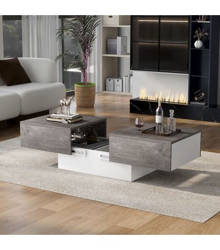 MERAX Tavolino da caffè Tavolino da salotto moderno in Legno Soggiorno lucido con tavolo allungabile e contenitore (grigio)