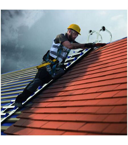 LAVORI SUI TETTI - Ristrutturazione di tetti, sostituzione di tegole, creazione di finestre velux, ecc. - Installazione di antenne TV, parabole, telecamere di sorveglianza, parafulmini, ecc. - Sostituzione o ristrutturazione di camini, controllo delle perdite, ecc. - Controllo degli insetti, lotta ai parassiti sui tetti - Verniciatura di abbaini, tegole di colmo, ecc. - Installazione di inserti, stufe a legna o a pellet, canne fumarie, condizionatori, ecc. SICUREZZA - Ampie strisce di supporto in gomma antiscivolo per un'arrampicata sicura. - Montanti rinforzati per garantire rigidità e stabilità. - Gradino smussato per un migliore appoggio del piede e una sicurezza ottimale. PIOLI RIALZATI - Pioli rialzati per non danneggiare le tegole o le ardesie del tetto. - Spazio aumentato sotto il piolo per una salita sicura. - Creazione di un vero e proprio gradino sotto il piede. - Altezza libera sotto i pioli: 7 cm. MODULARE - Gancio di colmo in alluminio in un unico pezzo per tutti i tetti. ...