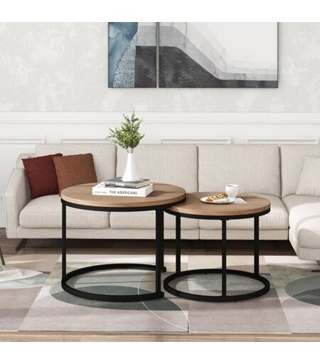 REDOM Tavolino Tavolino rotondo impilabile Tavolino (2 pezzi) Rovere