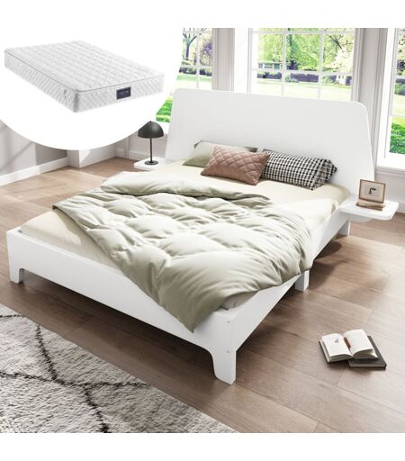 REDOM Letto in legno massello 160x200cm, giroletto matrimoniale con testiera contenitore e rete a doghe, colore bianco, materiale di alta qualità, facile