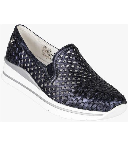 Cinzia Scarpe Da Donna In Pelle Traforata Con Zeppa Mocassini Blu Taglia 38
