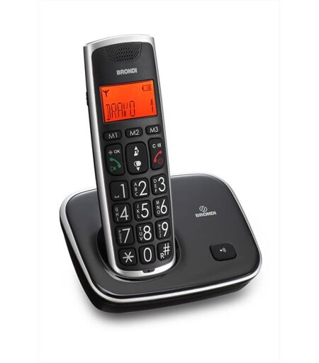 Telefono cordless DECT/GAP - Display con grandi numeri illuminato in arancio - Rubrica 20 memorie - ECO DECT - Tasto BOOST per amplificazione e controllo di tono - Alto volume degli squilli - Suonerie polifoniche - 3 memorie dirette - Vivavoce ...